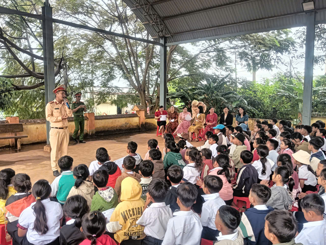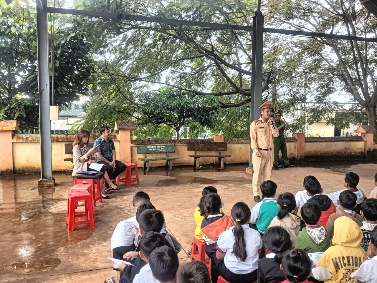 Công an xã Đắk Song, tỉnh Lâm Đồng phối hợp với Đội cảnh sát giao thông đường bộ số 6, phòng cảnh sát giao thông công an tỉnh tổ chức buổi sinh hoạt ngoại khoá, tuyên truyền , phổ biến các quy định pháp luật, các kỹ năng tham gia giao thông cho cán bọ, giáo viên và học sinh trường TH Ngô Gia Tự